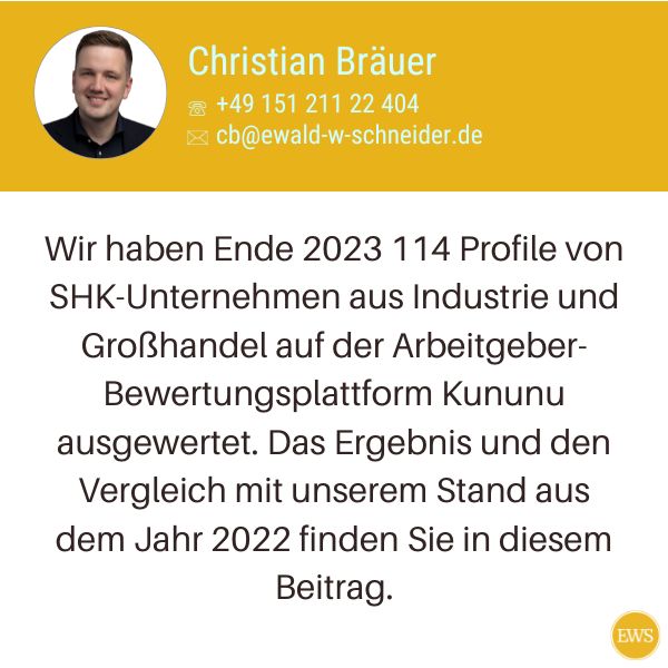 Wir haben 2022 und 2023 114 Kununu-Profile von SHK-Unternehmen aus Industrie und Großhandel ausgewertet.